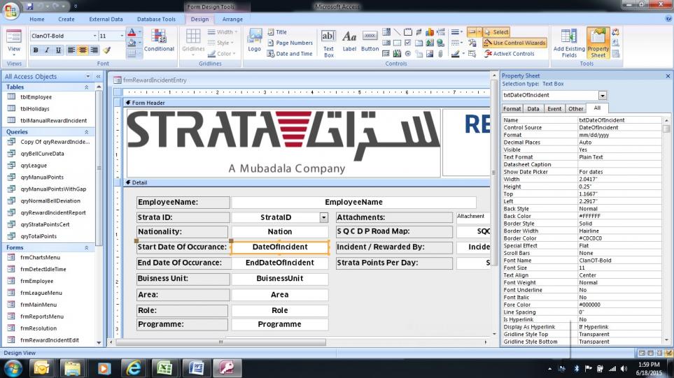 The 3 fields that need to check and match are StrataID , DateOfIncident , EndDateOfIncident these are all in the tblManualRewardIncident and appear as buttons in the form frmRewardIncidentEntry the buttons are as follows