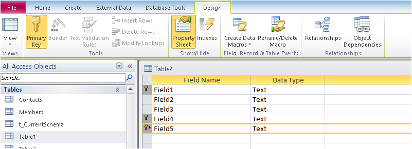 OR create a composite PK field by holding the control key down as you select each of the fields then click Primary Key