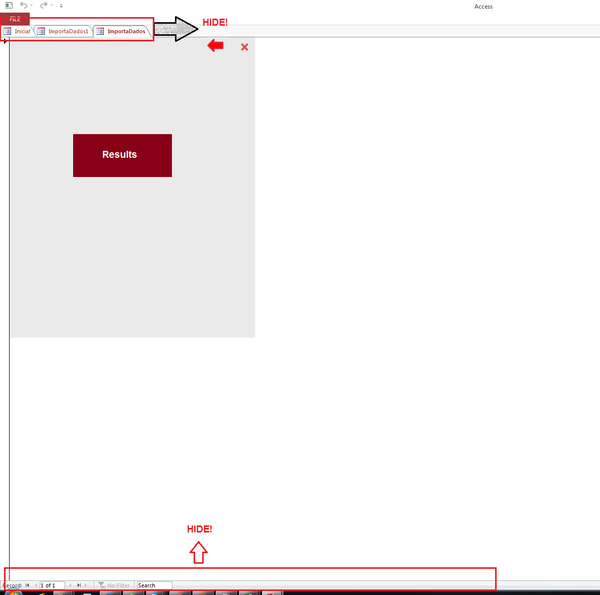 That is, hide the tab with the forms names and the bellow tab with the records, filters, search...As the follow picture: