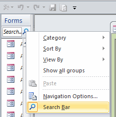 Note on my attachement - The Search for the Navigation payne is showing. Found an article for Access 97 with the exact same problem. The article said to turn off the Search.