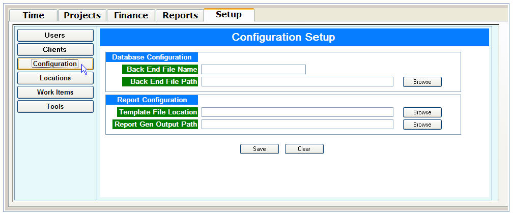 The config screen is in the fifth TAB of the TABBED form (which is the set of "SETUP" screens) and the 3rd subform in the SETUP Form, normally selected with button on lefthand side, see the ConfigScreen screen shot. The initial run always fails to link, so a manual call to the subroutine is needed, which is from the button in the Tools Screen (5th subform) per screen shot.