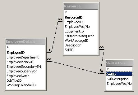 As soon as I bring up the SkillDetails table on the relationship window the query cant do anything - when I execute the Query it doesn't even return blank fields - just the title and nothing else.