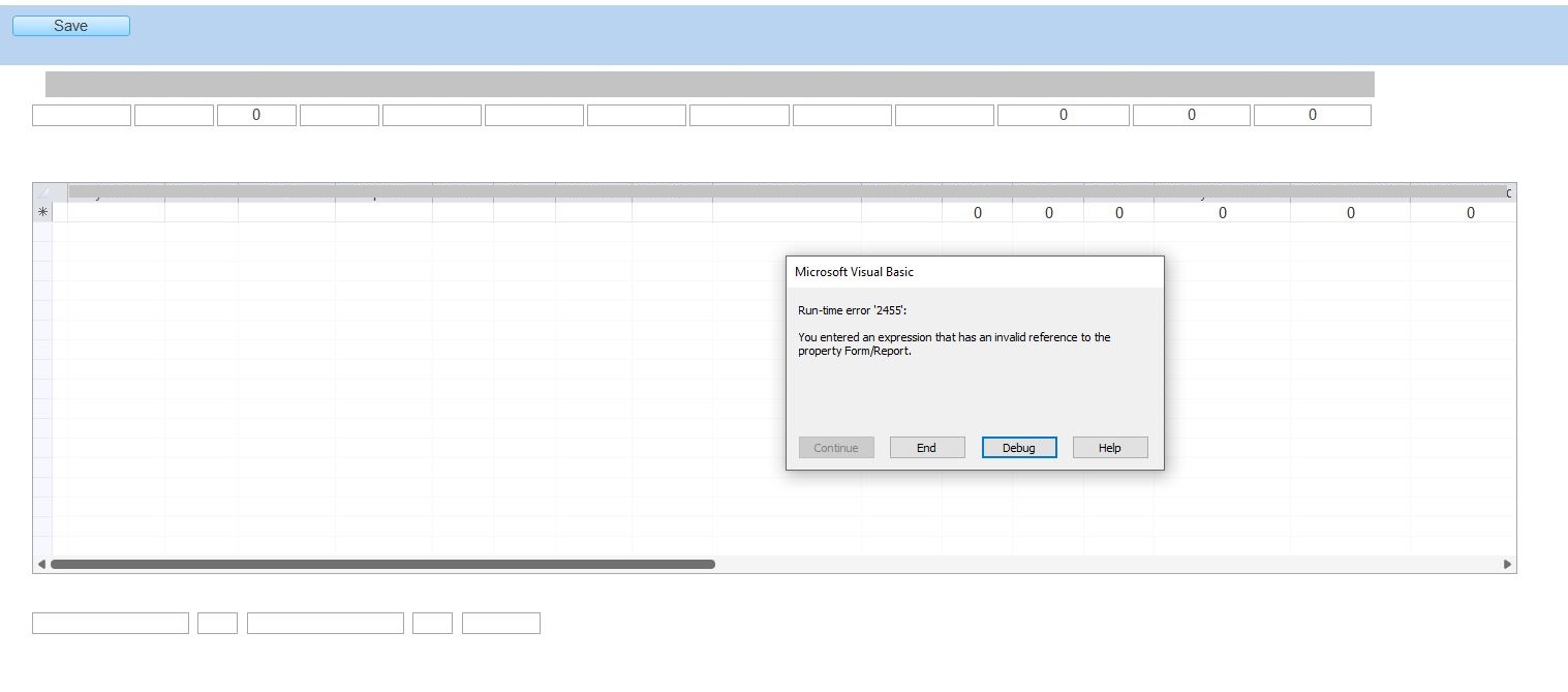 The error is on 'Forms!frmDuties!sfrmRuns!sfrmNotes.Form.AllowAdditions = True'