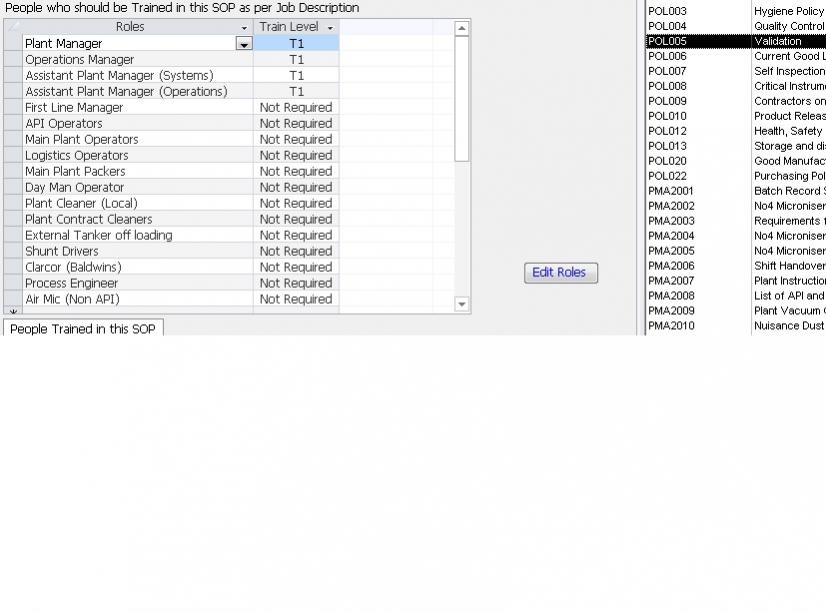 See attached. Pic1 shows a screen shot when access running. The idea is after selecting SOP on the right, the roles subform adjusts to suit the level of training required for each role. T1, T2, T3 or Not required.