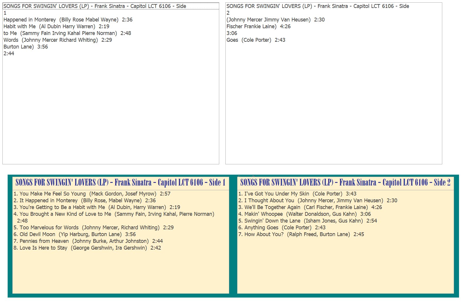 So yes, this may be different to what is conventional, but will be better for us than any "nicely Formatted" music database as it's features are purpose built.