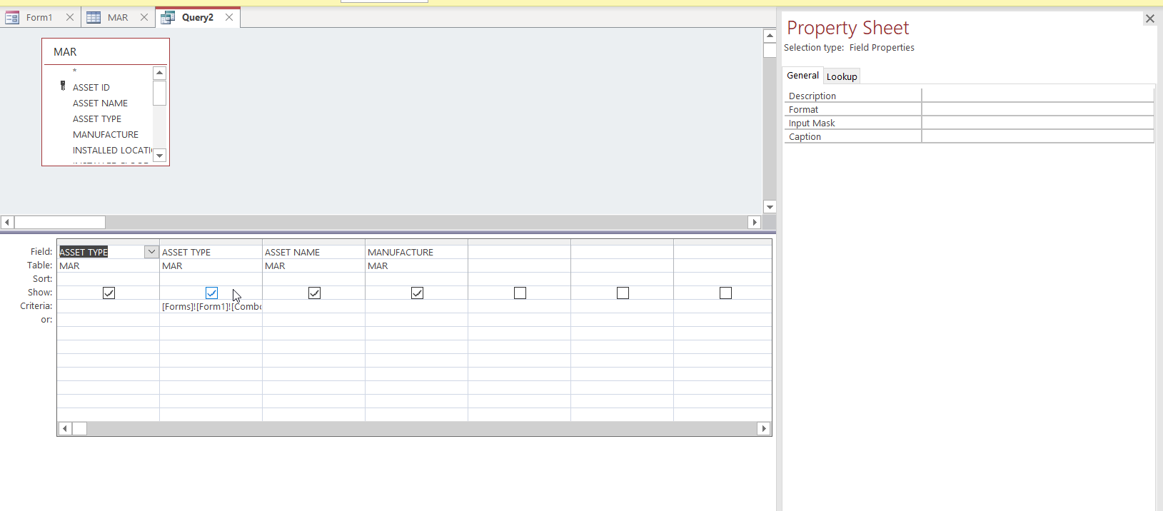 IIF(Trim([Forms]![Form1]![Combo0] & "") = "", [ASSET TYPE], [Forms]![Form1]![Combo0])