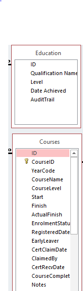 The theory here is if CourseCompleted checkbox is check and there is a value in CertRecvDate, the qualification has been achieved and therefore should be added to the previous education table (which will be used later for CV's etc)