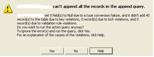 I have a database with a table linked to an Excel spreasheet. I am trying to create an append query to load data from the linked table into a candidate table. Each record in the candidate table has a candidate number which is automatically generated and is the primary key. When I run the query it cannot update the table because of key violations. I haven't got the candidate number as a field in the append query, do I need to put it in there? and if so how should it be setup? Any help would be much appreciated.