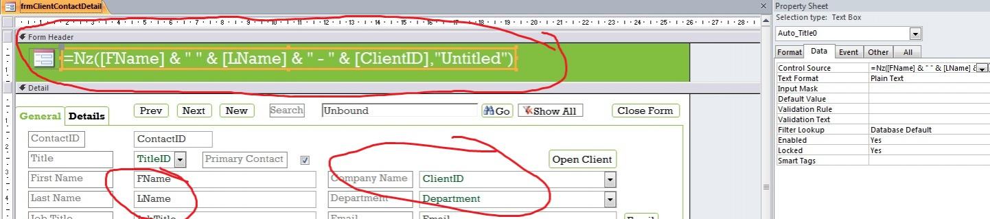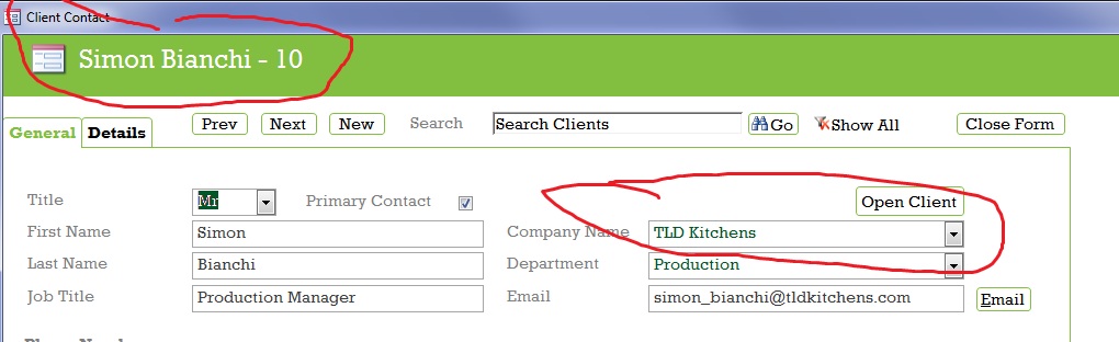 The company is a combo box on the form which is populated from a table with a relationship to the company. In this case ClientID.