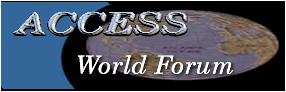 E edtab Registered User. Local time Today, 12:43 Joined Mar 30, 2002 Messages 257 Aug 31, 2002 #1 Re: Logo Here's my stab at it. edtab Attachments access_world_forum.jpg 11.9 KB · Views: 222