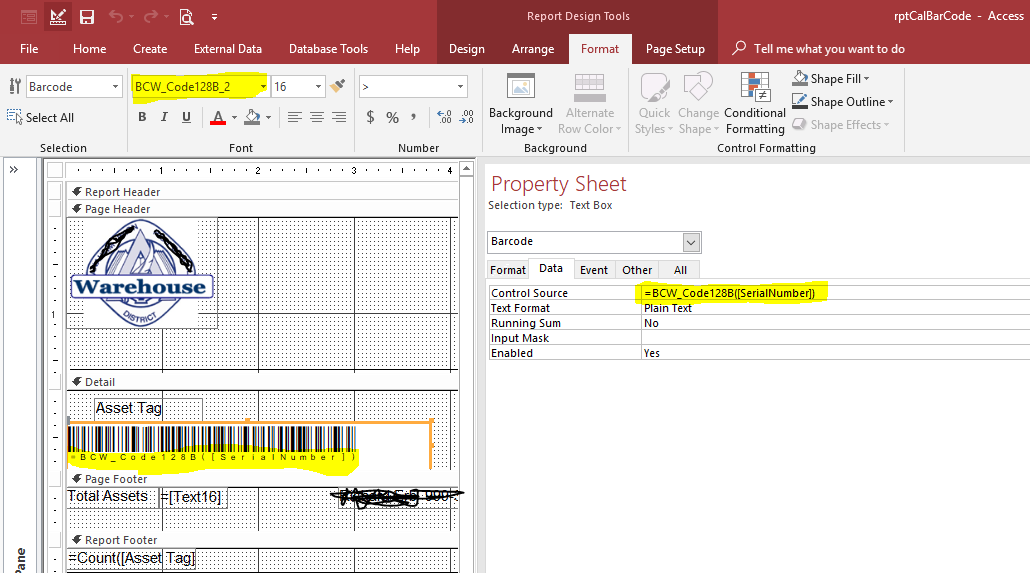 I did not use the control source as you did, i have my "SerialNumber" and I selected the barcode font