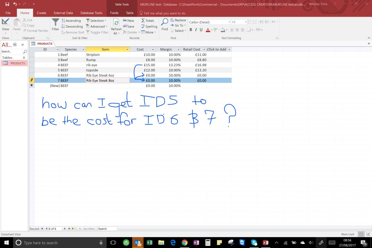 My first hurdle is to base the cost price of one thing on anoter as we have many varients for each product and I do not want to change the price for each one.