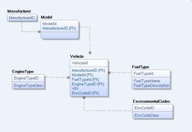 Will the record structure arising from such a schema allow me the flexibility required for a user to assign a environmental code based on multiple combinations of manufacturer, model, engine size and fuel type?
