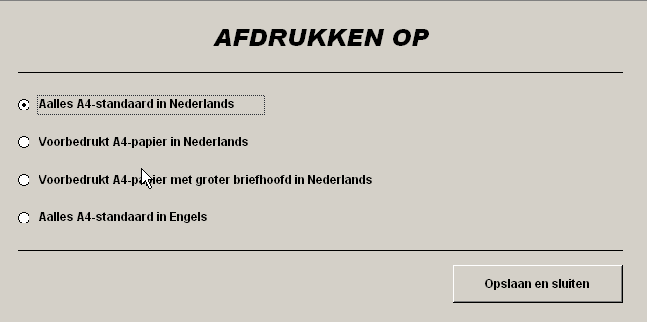 I'm using already some time my database in MS Access 2003 for invoicing purposes. Front and backend are separated. From the menu I can push a button and a form opens, which gives me 4 options to select the paper to print the invoice (e.g. blanc, pre-printed, ...) on. Either the default option or the by the user selected option is stored in a table in the frontend for future use. The code in the 'on open event' of the form is: