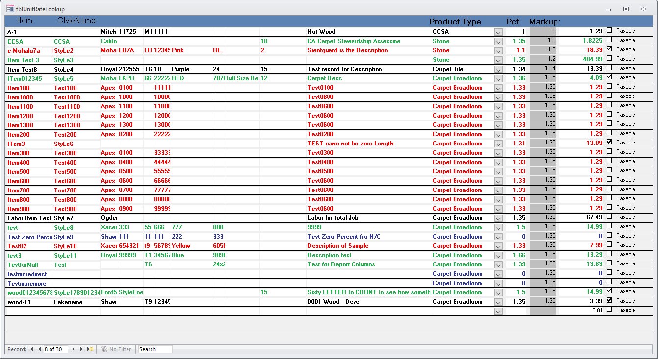 One thing I wonder about, is it possible to add to the Product Type Control ComboBox, a lookup to the Product Type table that gets the Markup to have to compare to the Pct? And have all that done on the Load Event, as well as still acting as a regular ComboBox to select the product Types?