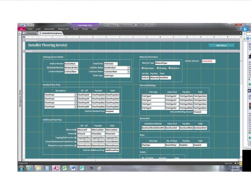I have created frmInstallerInvoicing and would like to create calculated controls and store the calculated data in my tblInstallerInvoicing. The controls I have created are 'job size' which comes from control source qryInstallerInvoicing, and 'pay rate' which comes from control source tblInstallerInvoicing, and the calculated control for 'total' comes from control source tblInstallerInvoicing. I can't create a calculated field in my table because of the two different control sources, and have been told that calculated controls should be left in the forms anyways. How do I format the calculated control to dump the data calculated into the total field in my table using my property sheet?