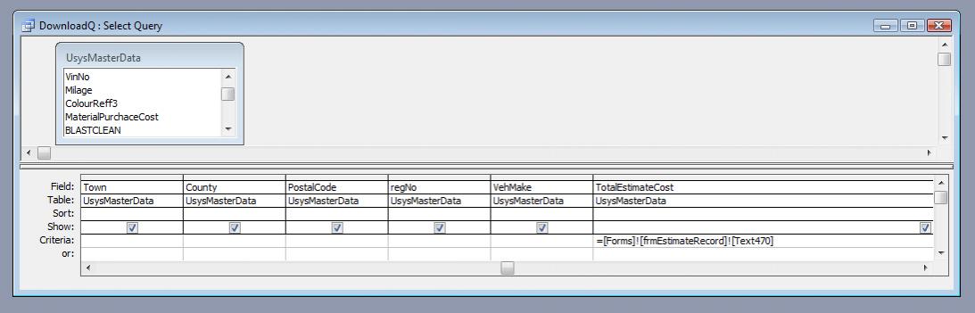 I am trying to bring this into a report via a query (copy attched) with out any success, as the result comes up blank