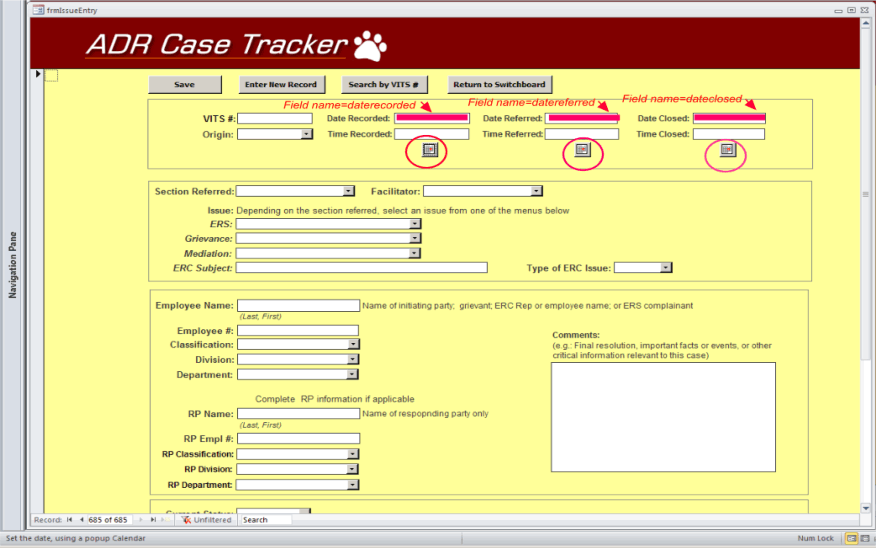 We recently upgraded to Office 2010 and some of the functionality in my original form was lost, including my little calendar icons as they no longer work. Although I repaired everything else, I do not recall how or where I got the calendar icons, and more importantly how I got them to work in the first place. I know it was a relatively simple task, but I have forgotten what I need to do so I can create the same functionality on my Access 2010 form. I've attached a screen shot of the form with the calendars and associated form fields highlighted in red.