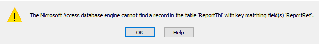 The error message is telling you exactly what the problem is. You are trying to match the field called ReportRef to a field on the table ReportTbl - and there is no match.
