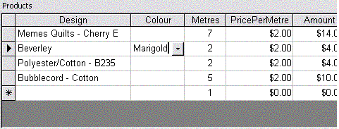 So the user should be able to select a product, and then one of the colours for the product. I have a form in datasheet view to do this....