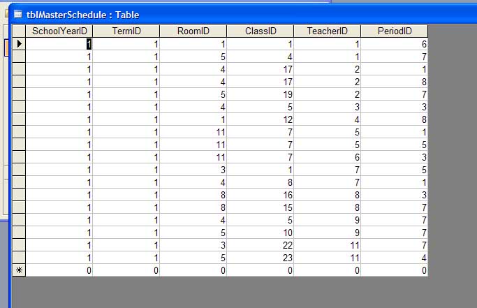 Below is the code that I have. If I remove the portion that say "Experiemental Code", it will assign all classes, but there are duplicate periods assigned. I can also get it to loop, but I get stuck in an infinite loop on the third record. Any help fixing or providing me with suggestions for the "Experiemental Code" section would be great!
