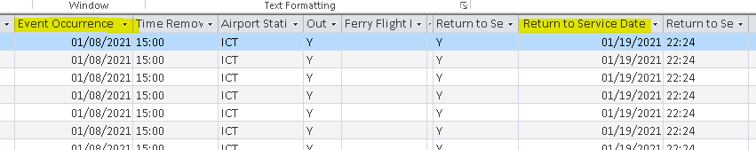 Are those date columns actually Date/Time data types? Or, are they Short Text?