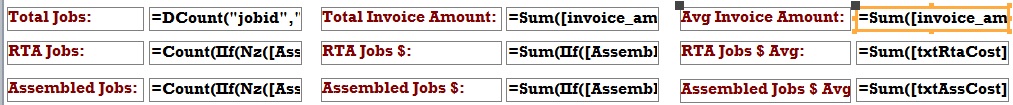 this produces an error box looking for txtRtaCost and txtAssCost to not produce the average for RTA Jobs $ Avg: and Assembled Jobs $ Avg: