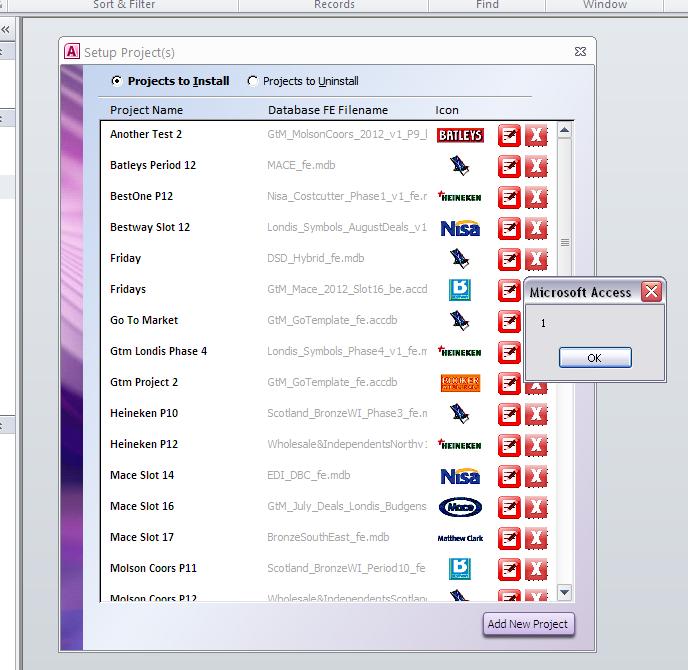 I have a continuous form with a button next to each record. I want to open up a pop-up form that relates to that record when the button is clicked. I have all the correct code in place and the form should open filtered by the contents of the ProjectName filed.