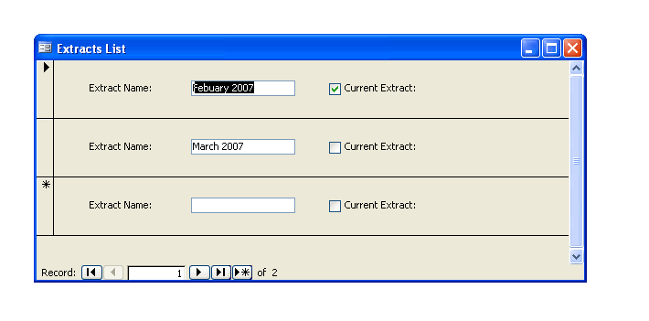 Hi Was wondering if anybody could help me with this. I have a Continuos form with a each record havin a checkbox. I would like to find a way that only one of those checkboxes can be ticked on the form at any one time.