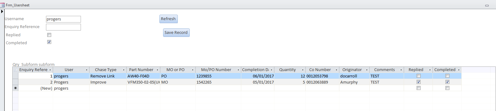 Replied and completed are Yes/No tick boxes, but this is always showing the first record, whether this matches the criteria or not.