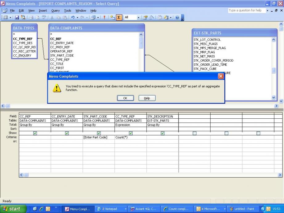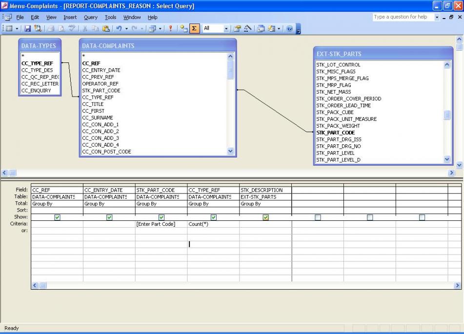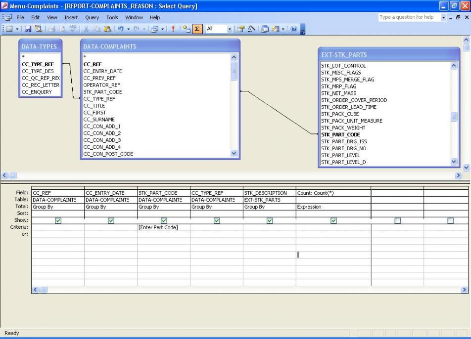 So when the user starts the Query it promts to: "Enter a partcode" so if the user enters "2358NXA" the results then show something similar to the below: