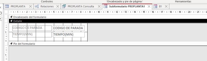 i have my form with the same information up but with diferent "codigo de parada" and "tiempo(min)"