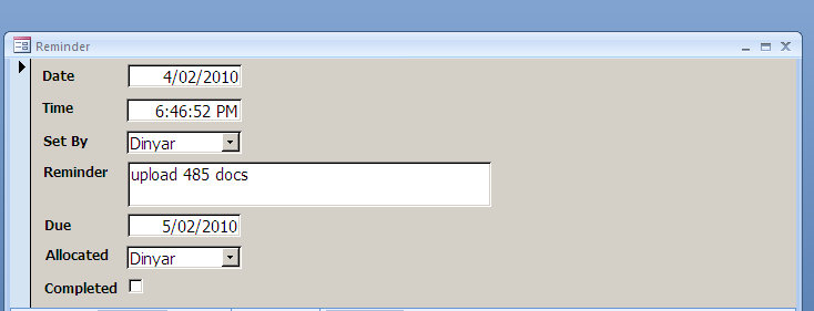 I have a client for, and attached to it is a subform called reminders (attached). I wish to create a button on this form, so that whenever users set a reminder then can press that button and the reminder data can be added to Ms Outlook calender.
