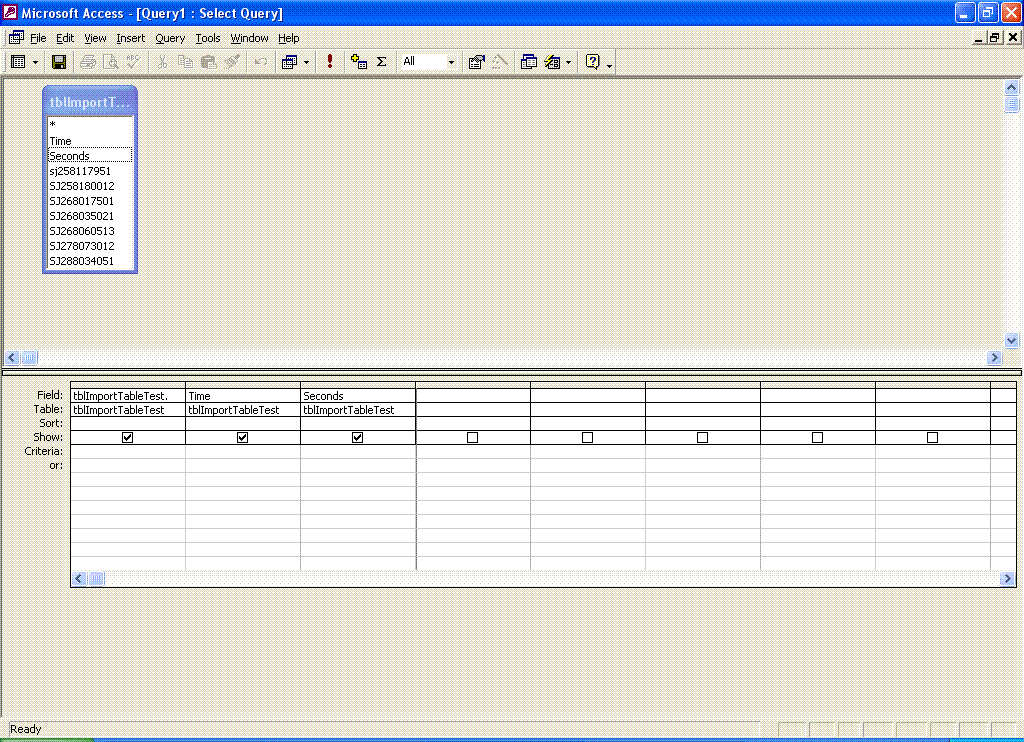 I need to make a query that shows the number of time steps that are over 0.001. Ive opened the query page and added what i believe to be the relevant fields to the database but im unsure which criteria box i should be putting in the equation. Also im not 100% sure what it actually is, im thinking something like [tblImportTableTest]>0.001.