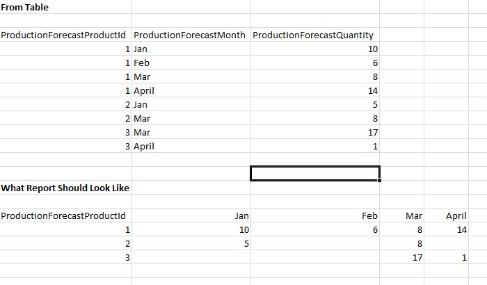 PIVOT tblProductionForecast.[ProductionForecastMonth];