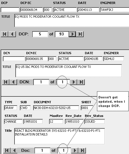 I want the subforms to recalculate the RecordCount for each of their Recordsets (dynamically) each time the record changes.