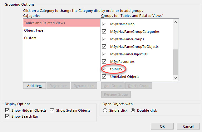 If you look at my example, neither of the tables appear in the Navigation Options dialog whilst they are deep hidden.