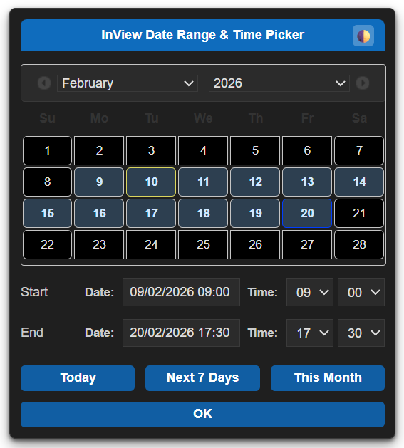Updated to allow range selection & added [Today]; add time T/F aswell..