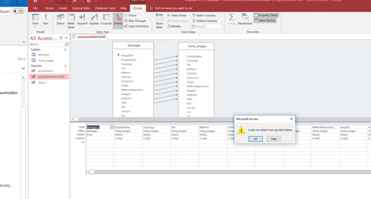 DELETE DISTINCTROW tblImages.*, Temp_Images.DisplayName