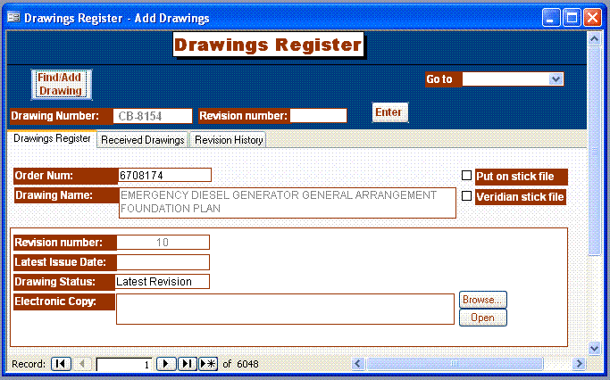 -If the drawing number exists but it is a new revision, it jumps to the correct drawing record and goes to a new record in the subform.
