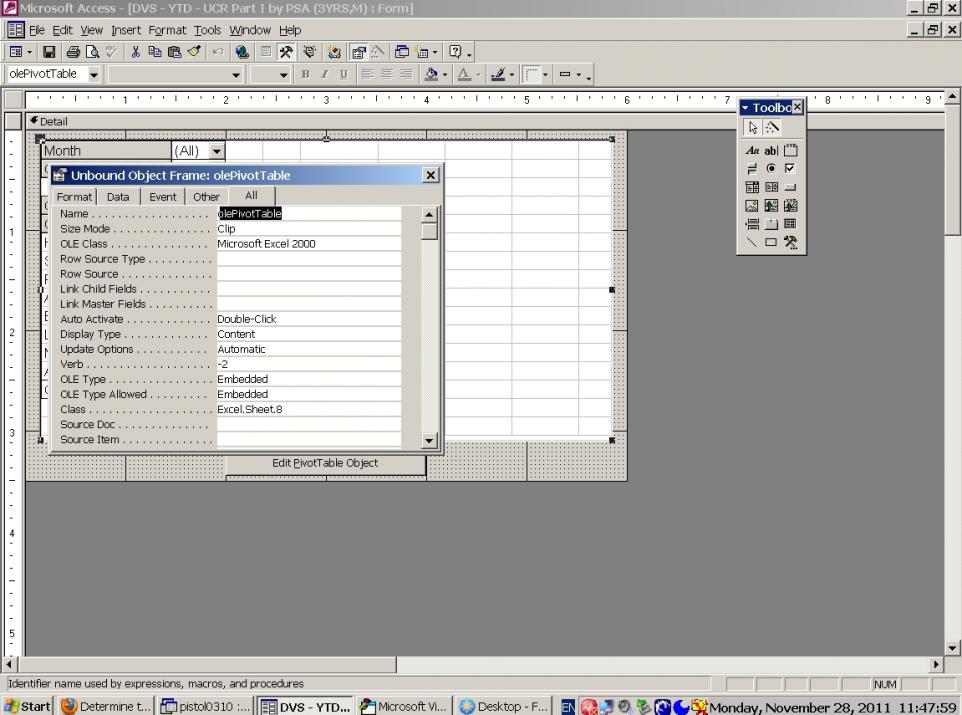 Dim xlWkBk As Object Forms![DVS - YTD - UCR Part I by PSA (3YRS,M)].olePivotTable.Action = acOLEActivate