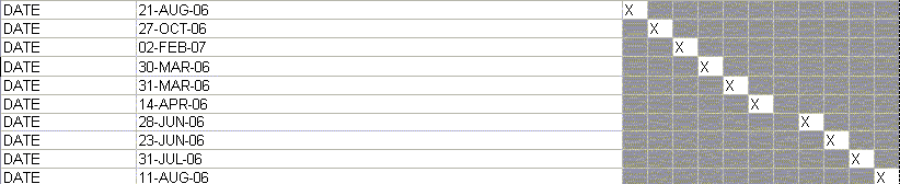 EDIT: I have multiple groups like 'Date' in the above example. Basically for each group I would like it to be diagonal. I also have some groups that use 'Feature A, Feature B, ect' in place of Date, and for those groups I need to leave the rows undisturbed.