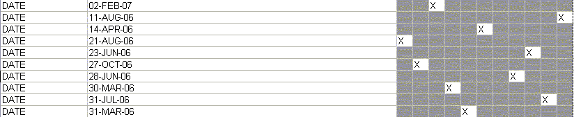 I was thinking of exporting the query to excel and then running a script that would look for 'X's in the first column and then move those rows to the bottom. And so forth for each column, until they are in a diagonal like above. (Because the rightmost 'X's are moved to the bottom last).