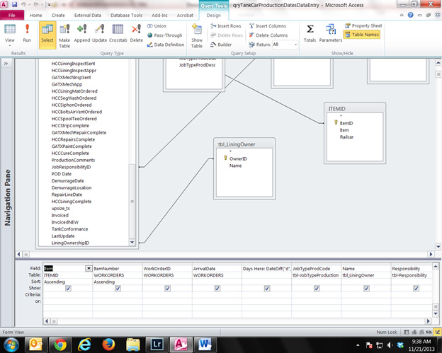 I can see the table fine and it says it has a primary key, auto numbers, etc. however, as you can see from the jpg below when I add the table to the query and link the id as in all the other tables, for some reason, this one makes all the data disappear when in datasheet view.