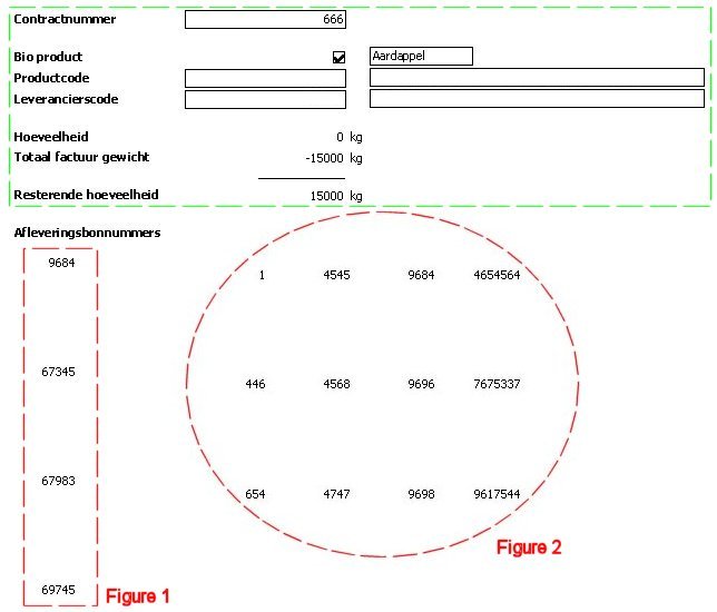 The data in the green shape is in the header of the group 'Contractnummer'. I put the text field 'afleveringsbonnummers in the Details section but that didn't work