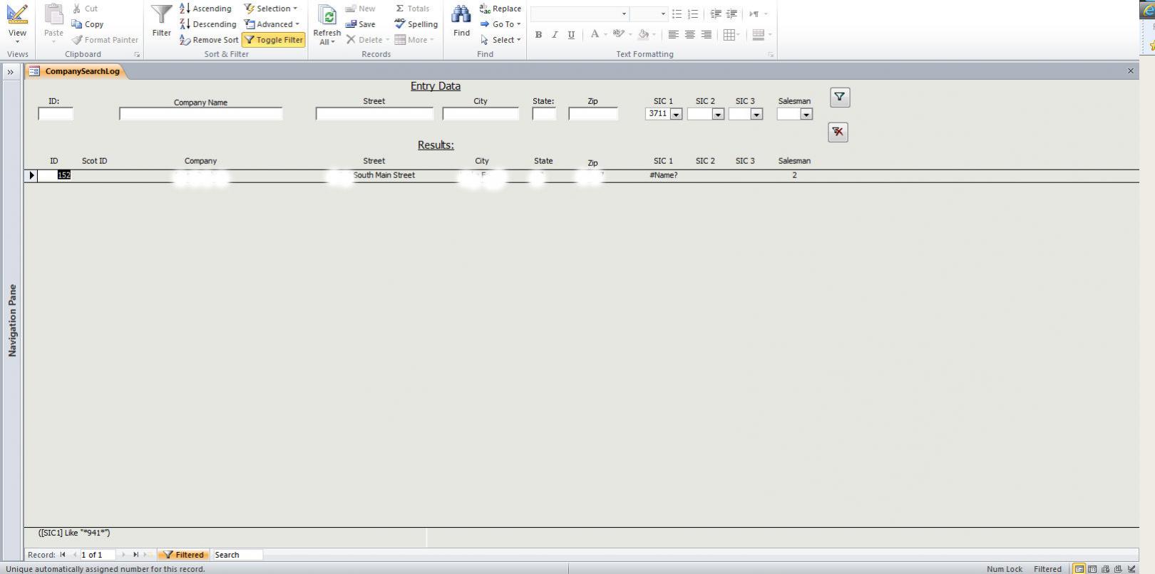 Issue is SIC 1 field is a combo box in the Entry Data Section.