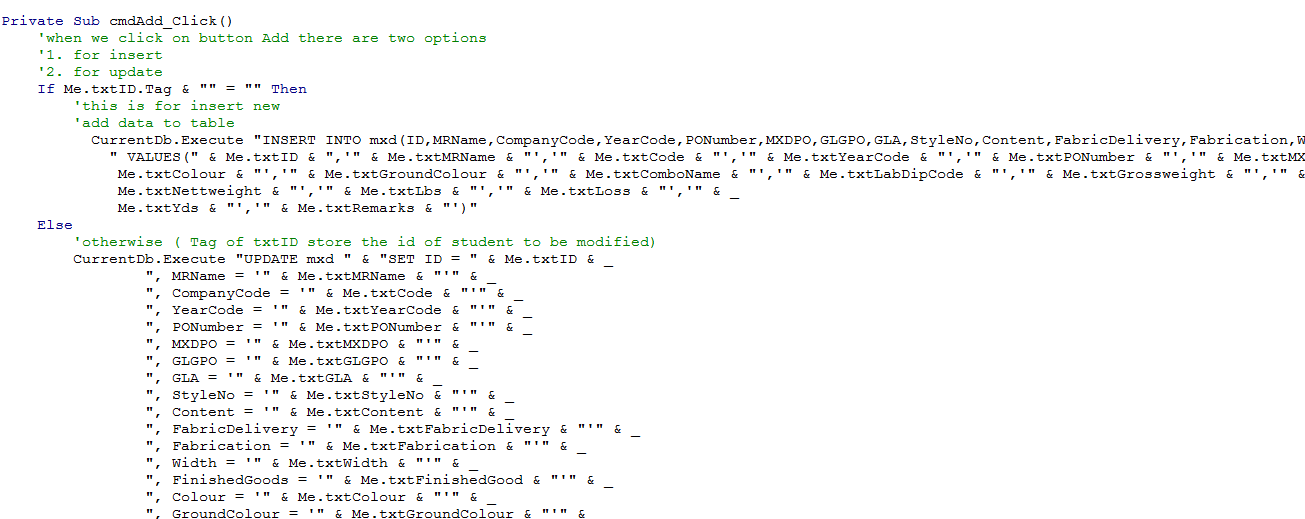 L luzz Registered User. Local time Today, 15:09 Joined Aug 23, 2017 Messages 346 Oct 17, 2017 #1 Hello guys, How do i add a msgbox that display "Record added" when user click on the save button on the form? Thank you! Attachments save code.png 34.2 KB · Views: 99
