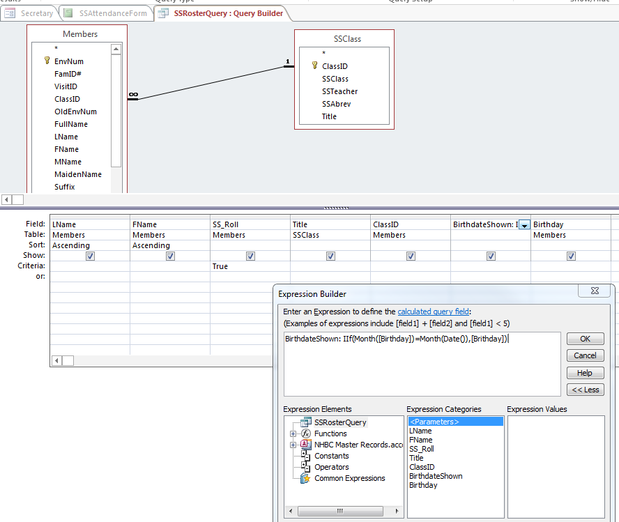 I tried making it a criteria in the query, but then it would only show those meeting the criteria. I just want it to show everyone in the class and then only show the birthday field if their birthday is occurring this month.