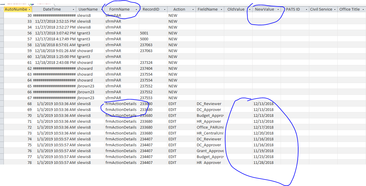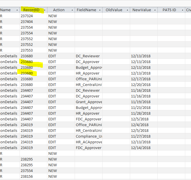 =DLookUp("NewValue","[tblAuditTrail]","[FormName]='frmActionDetails' And ActionID=" & [Reports]![PATS_ACTIONID])