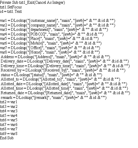 I used for that Dlookup function but what happens is when I enter the AWB number for the second time all the data in the table will be deleted for cust_address and status fields.